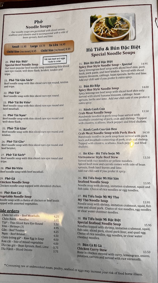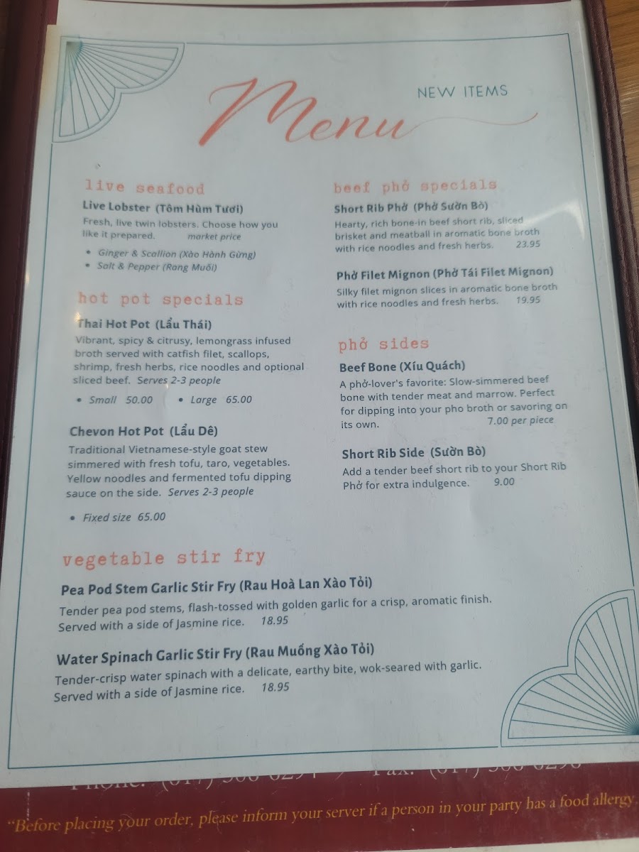 The Pho Le Restaurant Menu offers a vibrant selection of authentic Vietnamese dishes that will transport your taste buds straight to the heart of Vietnam. Located at 1356 Dorchester Ave in Boston, Pho Le is known for its rich, flavorful pho, made with a carefully crafted broth that’s simmered for hours. Whether you're in the mood for a classic beef pho or a lighter chicken option, there's something for everyone. Beyond pho, the menu also boasts a variety of fresh spring rolls, savory banh mi sandwiches, and hearty noodle dishes. Each dish is thoughtfully prepared using only the freshest ingredients, ensuring that every bite is as satisfying as the last. The cozy atmosphere makes it the perfect spot for a casual meal with friends or family.